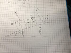 - Upper truck: $T_s - T_c - 8 - 5g\sin(10º) = 5a$