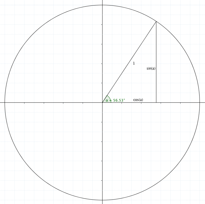 As with the bulk of geometry, it’s all to do with circles and triangles. In fact, you can1 define $\sin(\alpha)$ and $\cos(\alpha)$ using a circle and a triangle, too, which is where I’ll start2 :