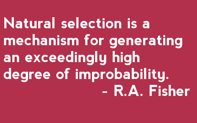 ![“Natural selection is a mechanism for generating an exceedingly high degree of improbability” - R.A. Fisher](/images/fisher.png ““Natural selection is a mechanism for generating an exceedingly high degree of improbability” - R.A. Fisher”)
