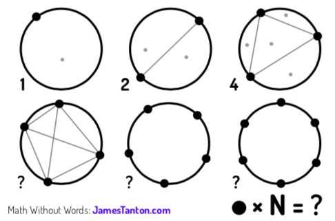 So we needed a more methodical approach. The nugget of the solution - for me, at least - was to think about how each line you add to a diagram affects the number of regions - and that’s related to the number of lines it crosses. In fact, adding a line that crosses $n$ other lines adds $n+1$ regions to the circle - which you might like to prove.